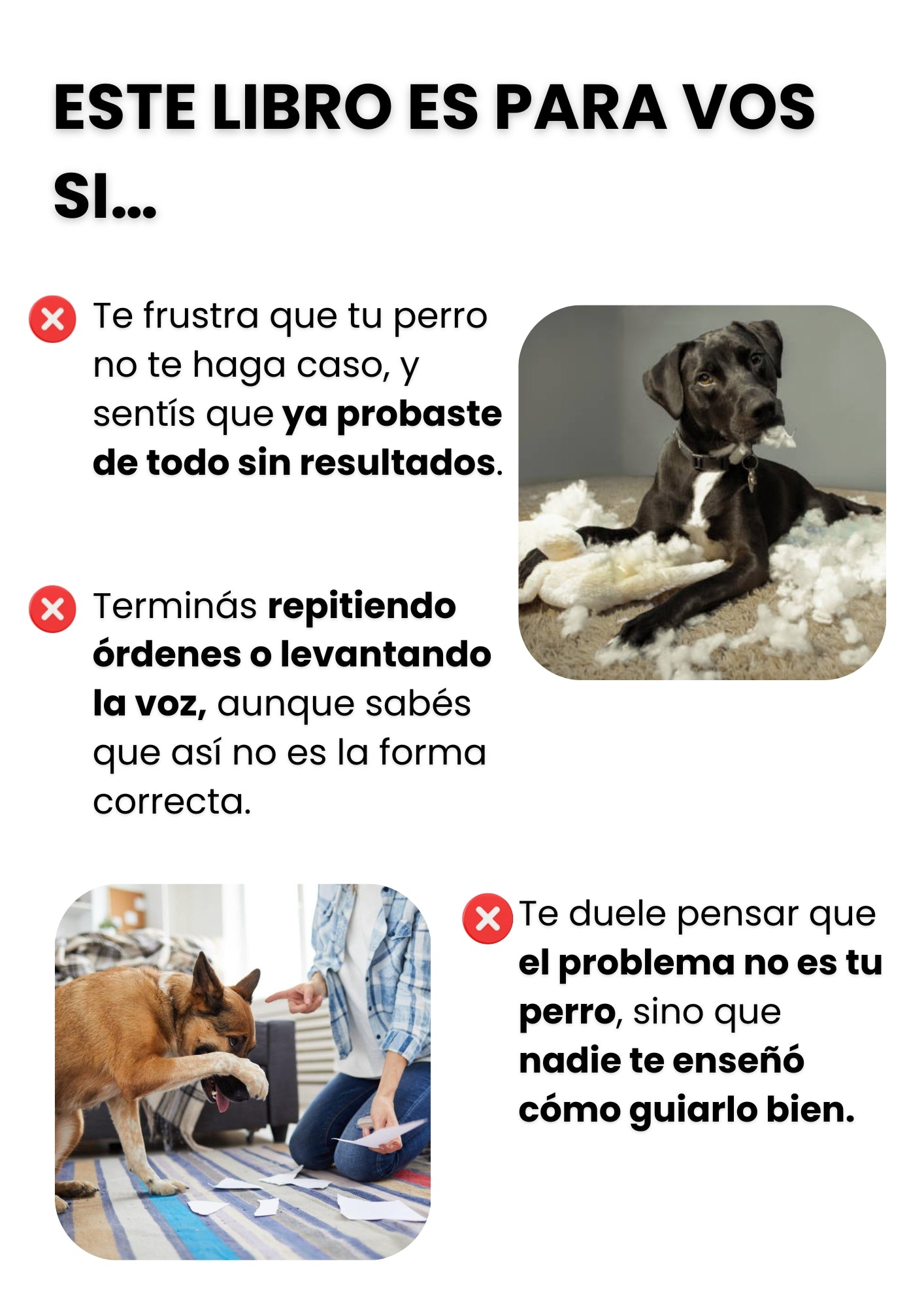 Pasá del caos, el estrés y la culpa a una convivencia tranquila, con un método claro que te dice exactamente qué hacer para que tu perro te haga caso. ❤️🐾